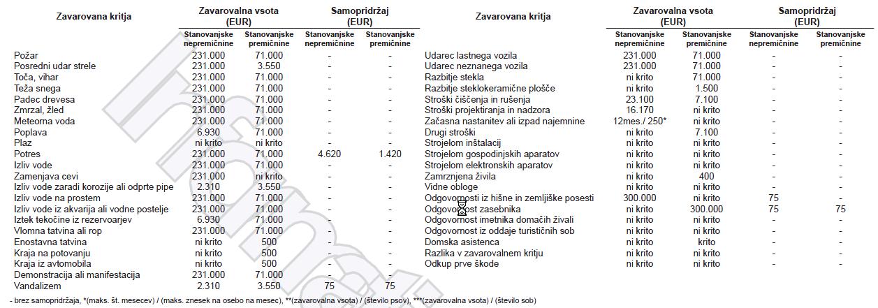 Zavarovalne vsote: